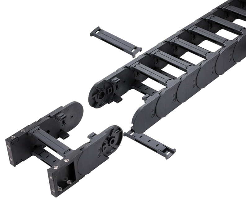坦克工程拖鏈適用于數(shù)控機床、加工中心、自動化機械及生產線等各類機床、機器人、運輸機械、測量儀器、搬運裝置以及其它驅動控制作為電線、電纜液、氣軟管的防護裝置,能隨機床、機械設備移動部件協(xié)調地運行,可發(fā)揮安全保護和導向的能力,可延長被保護的電線、電纜、液、氣軟管的使用壽命,降低消耗,可大大改善機床、機械設備的電線、電纜、液、氣軟管分布零亂的狀況,使之整齊、規(guī)則地排列在一起,能增強機床、機械設備的整體藝術造型效果。坦克工程拖鏈按材質分為塑料坦克工程拖鏈和鋼制坦克工程拖鏈。按結構分為橋式坦克工程拖鏈和全封閉式坦克工程拖鏈。坦克工程拖鏈內部高度從10-80(mm)不等,寬度從10-350(mm)不等,根據(jù)您想要保護的線纜的尺寸和線纜的數(shù)量來確定。拖鏈的使用強度主要和原料中所含的尼龍含量有關系。所以坦克工程拖鏈廠家又分為普通型坦克工程拖鏈和增強型坦克工程拖鏈。
