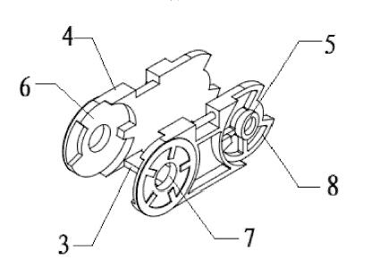 [0026]該工程拖鏈還包括兩個端部拖鏈單元I分別為第一端部拖鏈單元13和第二端部拖鏈單元14,第一端部拖鏈單元13上設有用于與拖鏈單元I的卡接部5連接的卡槽6,第二端部拖鏈單元14上設有用于與拖鏈單元I的卡槽6連接的卡接部5。其中,端部拖鏈單元I與拖鏈單元I的連接原理相同,第一端部拖鏈單元13和第二端部拖鏈單元14與拖鏈單元I能夠實現(xiàn)自由轉動。