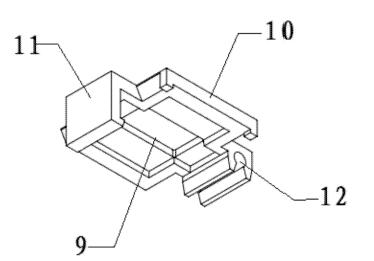 [0024]扣板2包括橫板9,橫板9的兩端設有扣接部,立板4上設有與扣接部連接的扣槽,橫板9設于兩塊立板4之間,橫板9上設有向相鄰拖鏈單兀I的卡接部5方向延伸的延伸板10,延伸板10的端部設于相鄰拖鏈單元I的卡接部5之間。