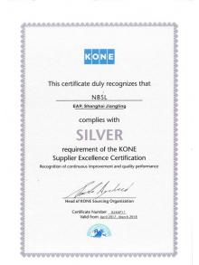 通力銀牌卓越供應(yīng)商(2017-2018)