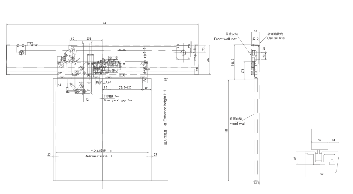 5、采用異步門刀,配轎門鎖;前轎壁安裝方式