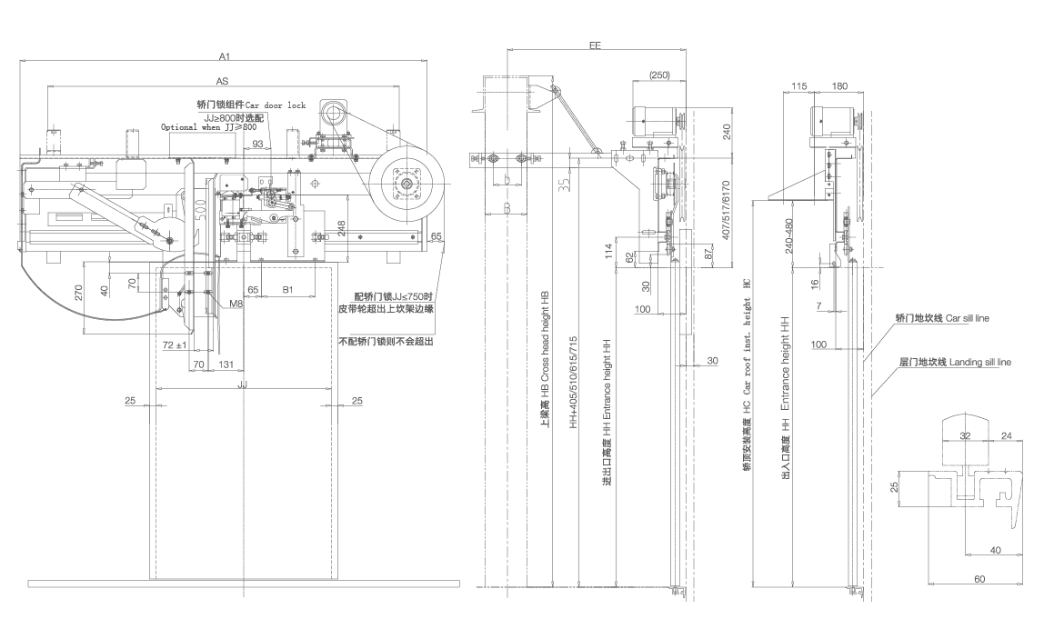 1、采用VVVF變頻控制技術(shù),06型門機(jī)配松下變頻器, A06型門機(jī)配NSFC01-01A變頻器 2、采用一級(jí)減速、同步帶傳動(dòng),運(yùn)行平穩(wěn)可靠 3、采用異步門刀,轎架安裝方式和轎頂安裝方式,選配轎門鎖 4、門板重量≤200kg (轎門廳門總重量);電壓:200-250 V,50/60 Hz