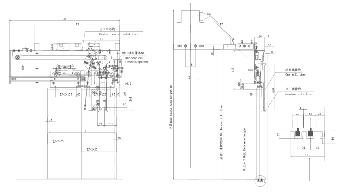 4、采用無連桿異步門刀,選配轎門鎖,安裝調(diào)試方便