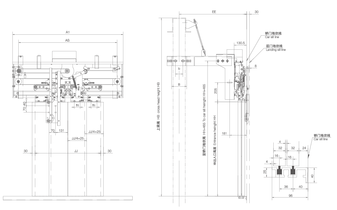 1、采用永磁電機,轉動力矩大,電機效率高,節能 2、采用電機同步帶直拖方式傳遞力矩,門機結構更緊湊 3、調速舒適感強,可實現力矩、位置、速度的全閉環控制 4、采用異步門刀,轎架安裝方式 5、門板重量≤200kg (轎門廳門總重量);電壓:200-250 V,50/60 Hz