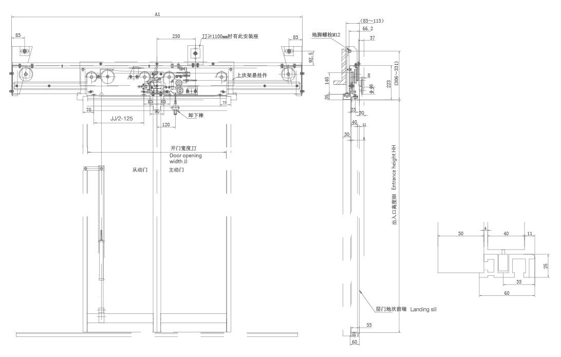 4、采用重錘關(guān)門方式,重錘和導(dǎo)桿置于門板內(nèi)側(cè)