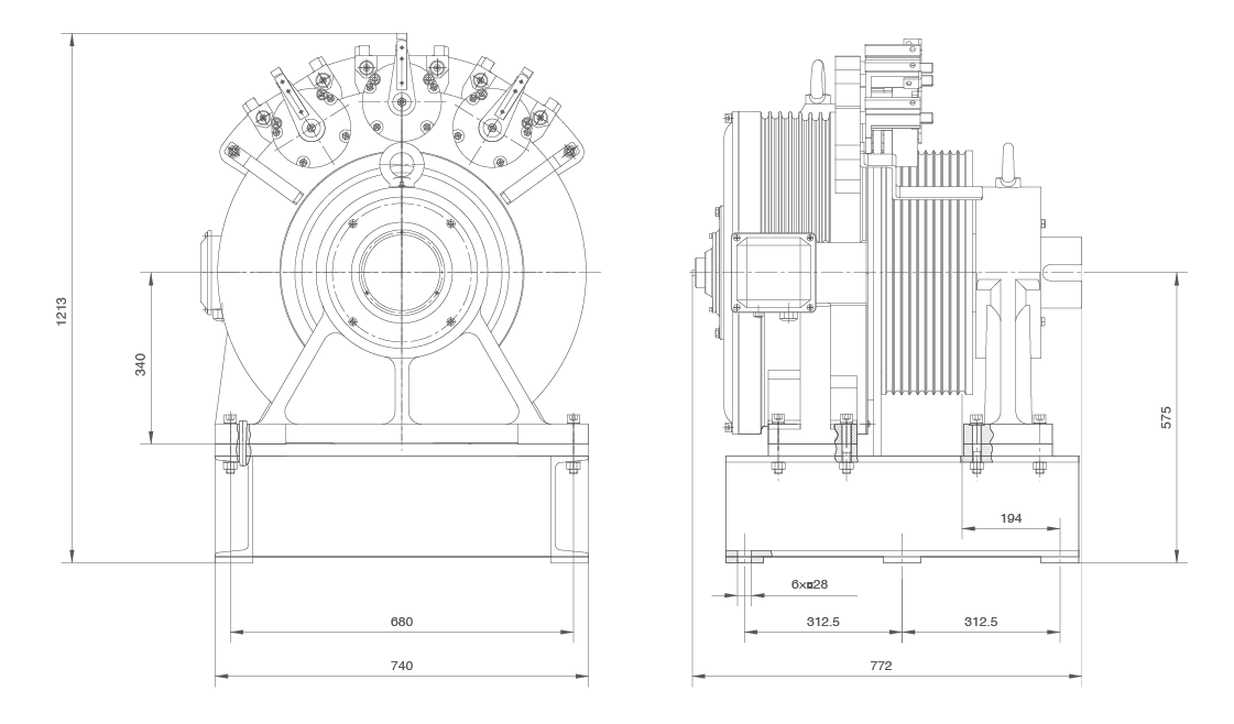 2、電動(dòng)機(jī)雙支撐內(nèi)轉(zhuǎn)子結(jié)構(gòu),確保主機(jī)在高速運(yùn)行時(shí)平穩(wěn)可靠,高效率,